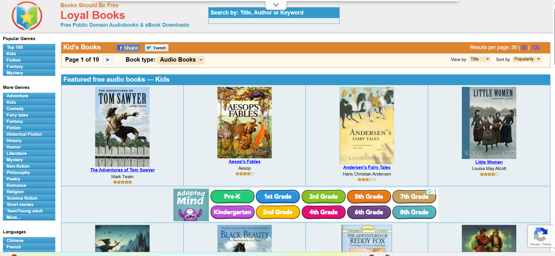 - Loyal Books (loyalbooks.com) Extensive free children’s audiobook collection.