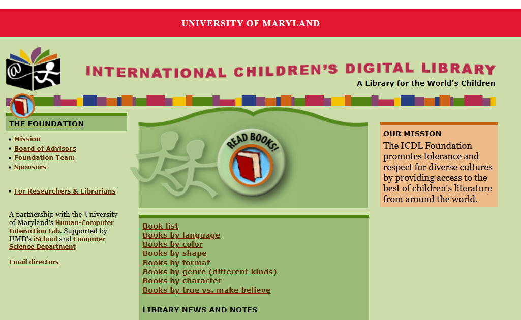 - International Children’s Digital Library (en.childrenslibrary.org) Multicultural stories in multiple languages.