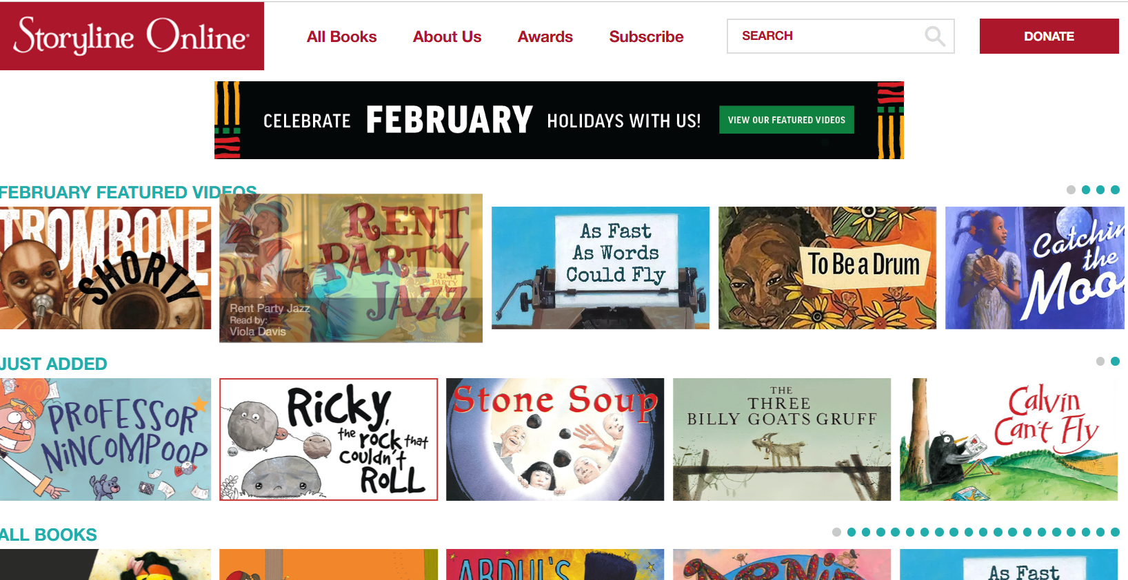 - Storyline Online (storylineonline.net) Celebrity read-aloud with expressive narration and illustrations (e.g., James Earl Jones reading The Polar Express).
